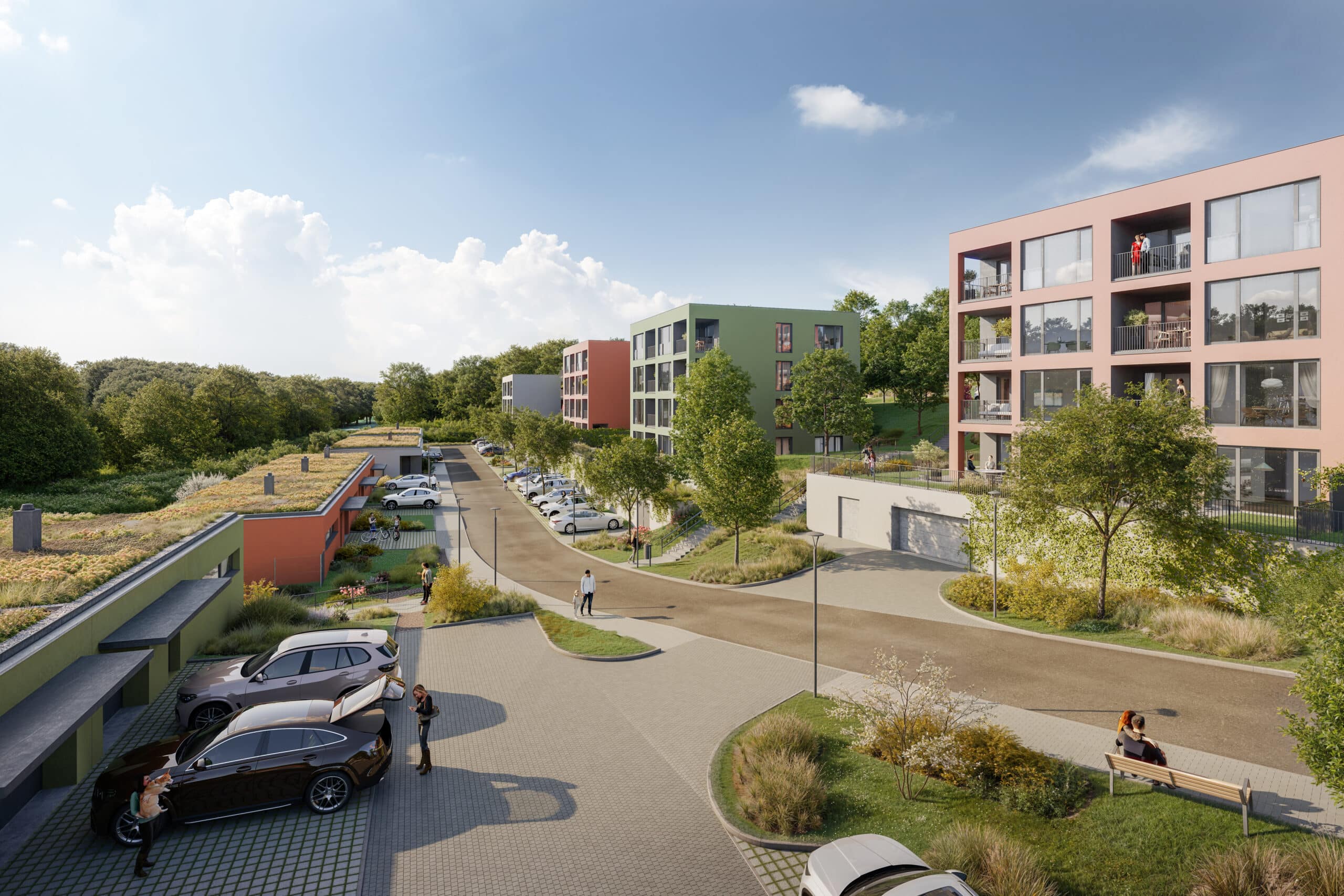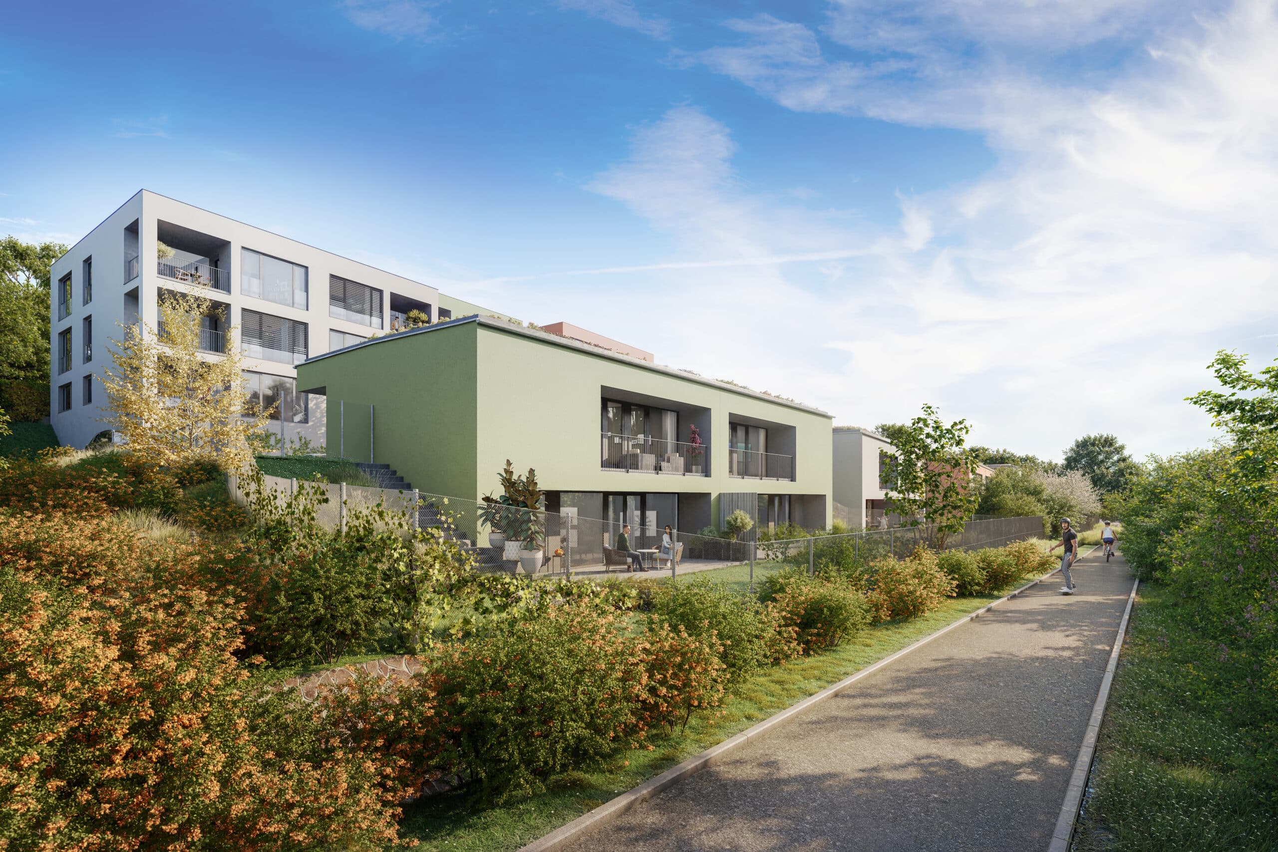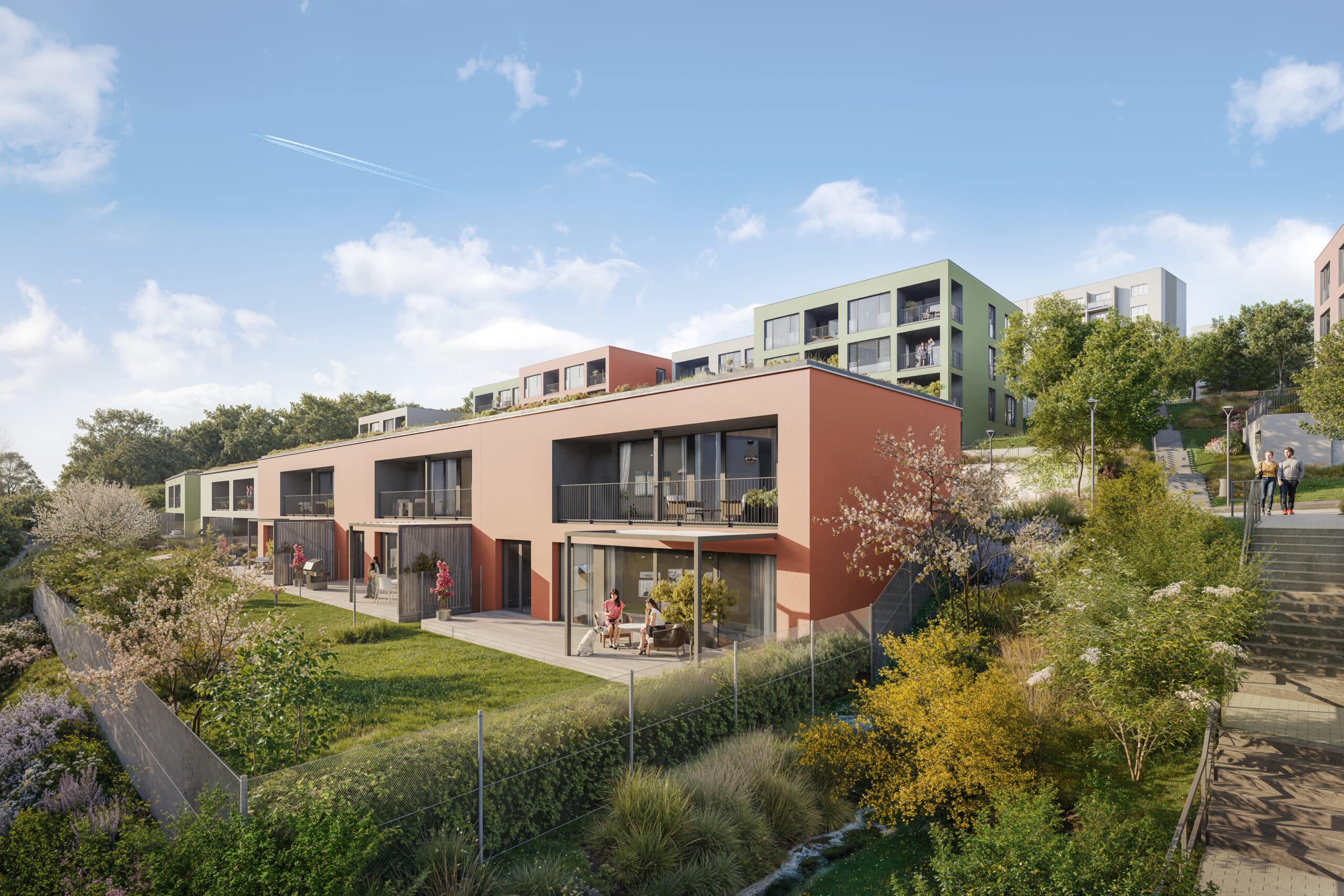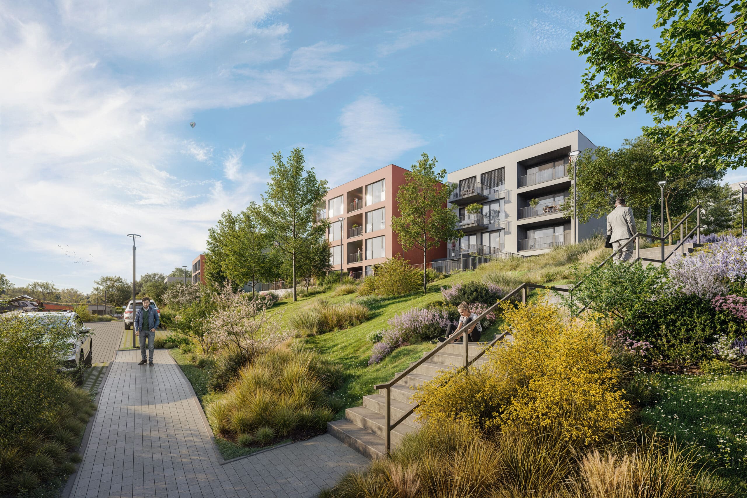 Celý soubor nabízí obyvatelům příjemné a funkční prostředí, kde jsou zachovány soukromé zahrady, otevřený kontakt s okolní zelení a přirozené pěší vazby. Gradace hmot, podnože a terénní členění vytvářejí prostor, který je jasně strukturovaný, zároveň však intimní a přívětivý pro každodenní život.
