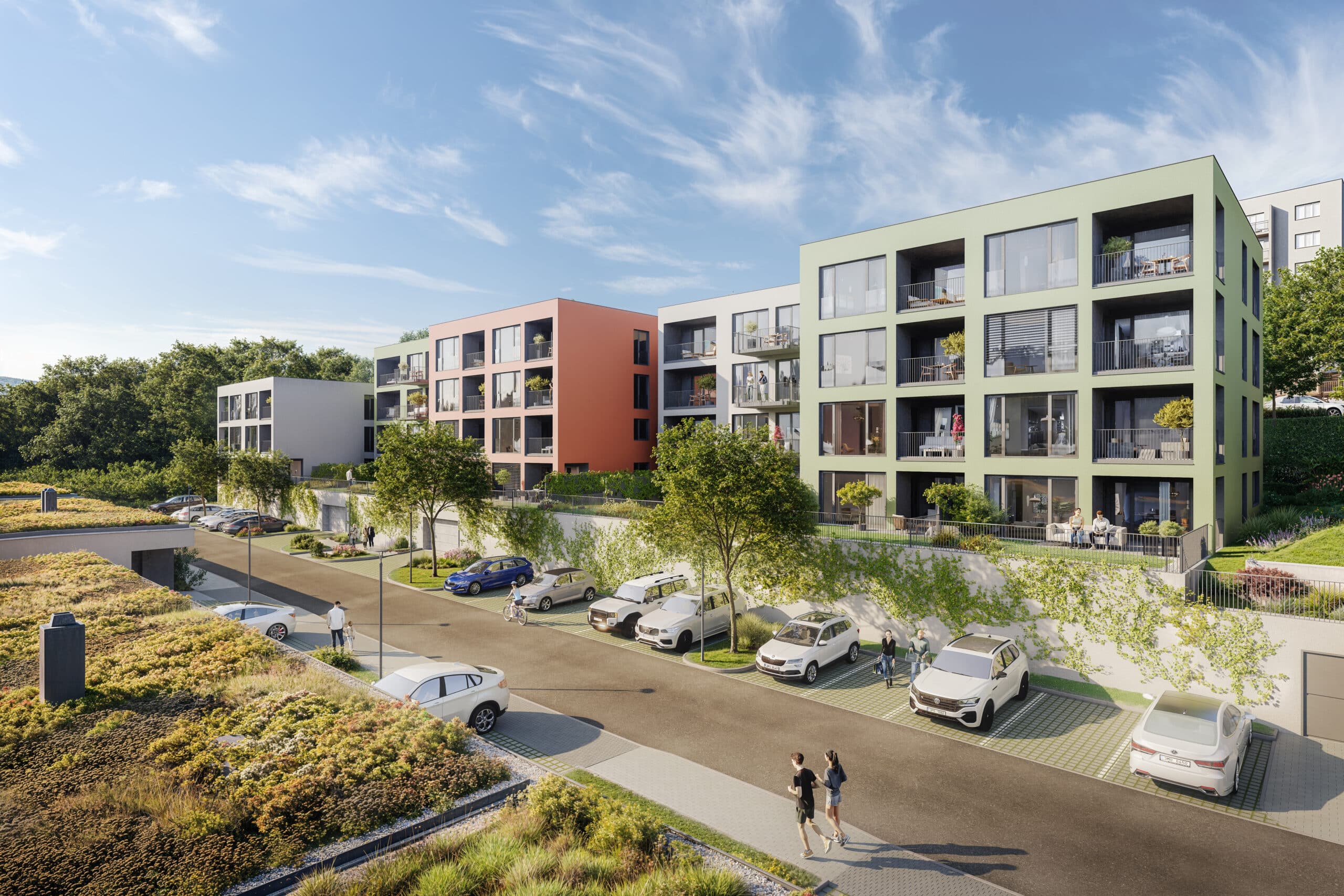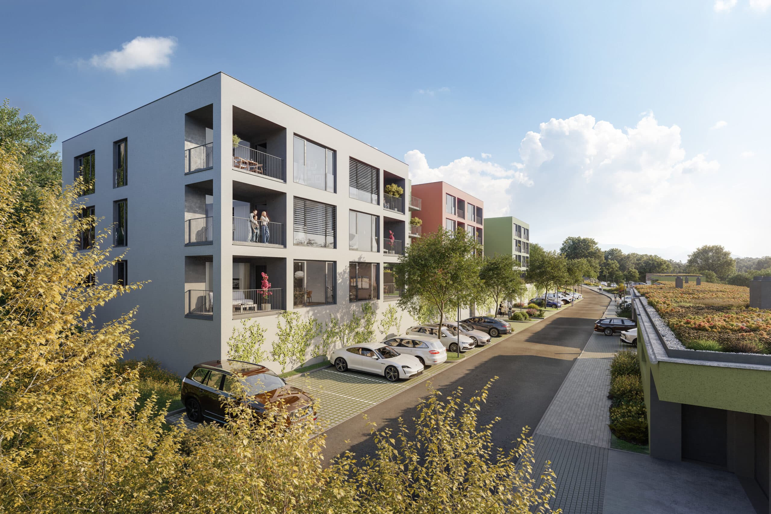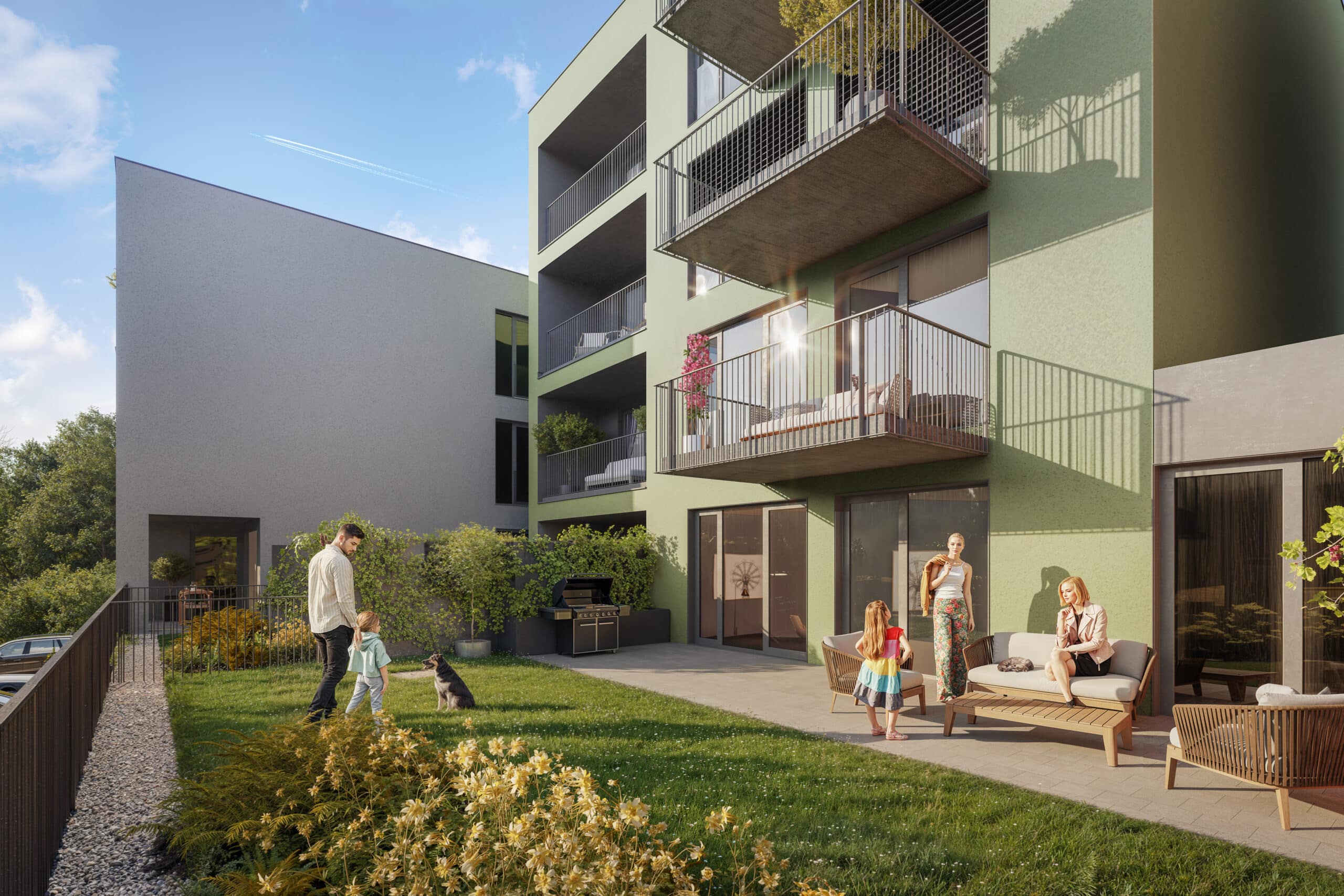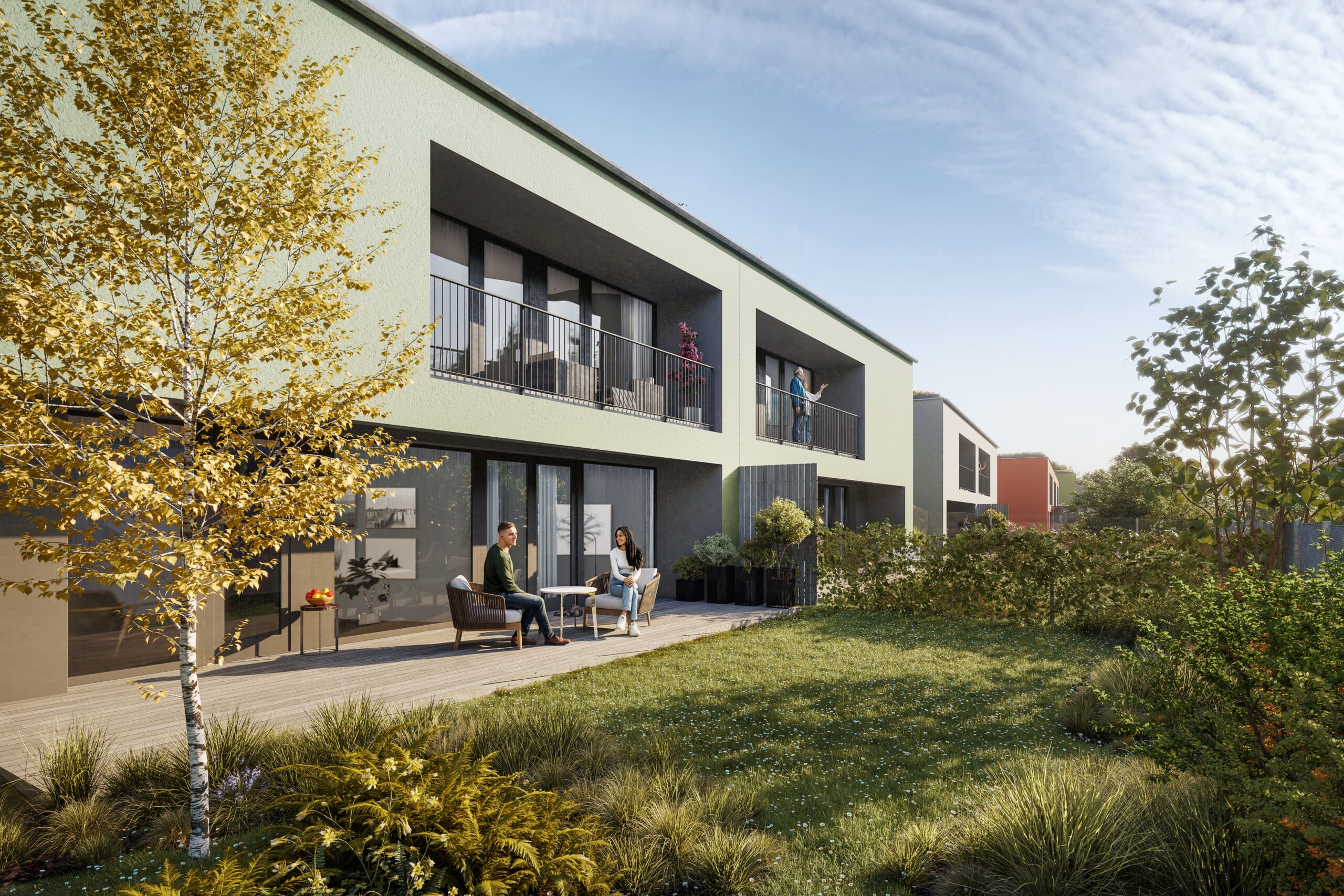 Celý soubor nabízí obyvatelům příjemné a funkční prostředí, kde jsou zachovány soukromé zahrady, otevřený kontakt s okolní zelení a přirozené pěší vazby. Gradace hmot, podnože a terénní členění vytvářejí prostor, který je jasně strukturovaný, zároveň však intimní a přívětivý pro každodenní život.